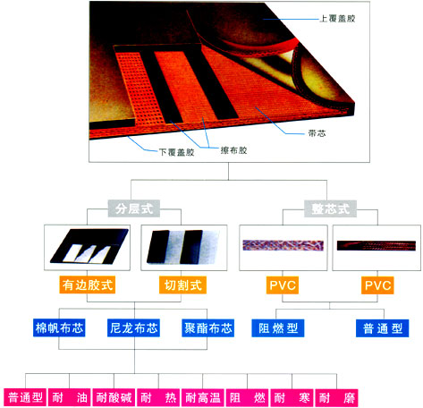 采用尼龙或聚酯帆布做抗拉体,其结构同普通棉帆布织物芯输送带。