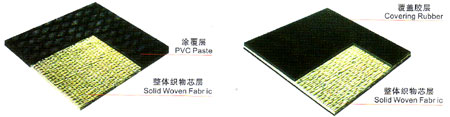 本产品采用整体带芯作为骨架材料,经浸渍,上下覆盖胶具有极女子的抗静电、阻燃等性能的PVG(橡胶面) 或PVG(塑胶面)材料而成。